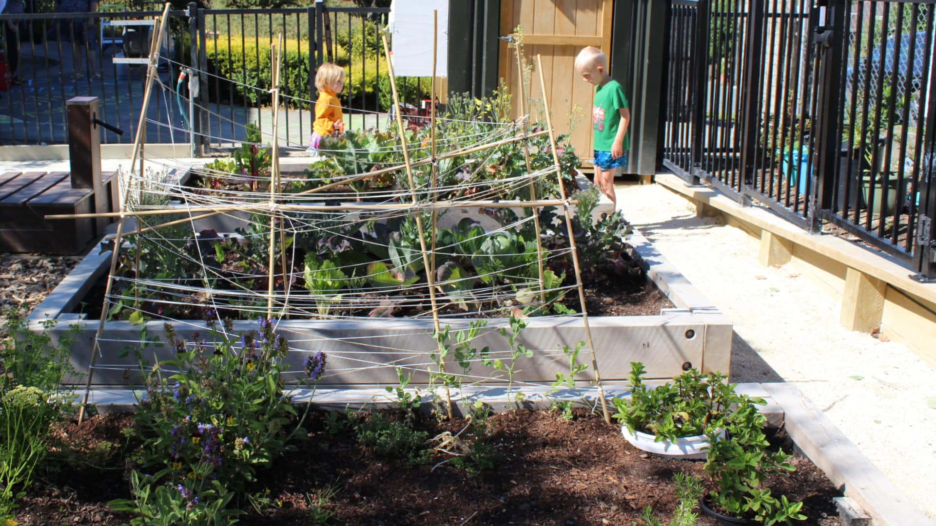 Raised veggie gardens and a sharing shelf for kai and connection