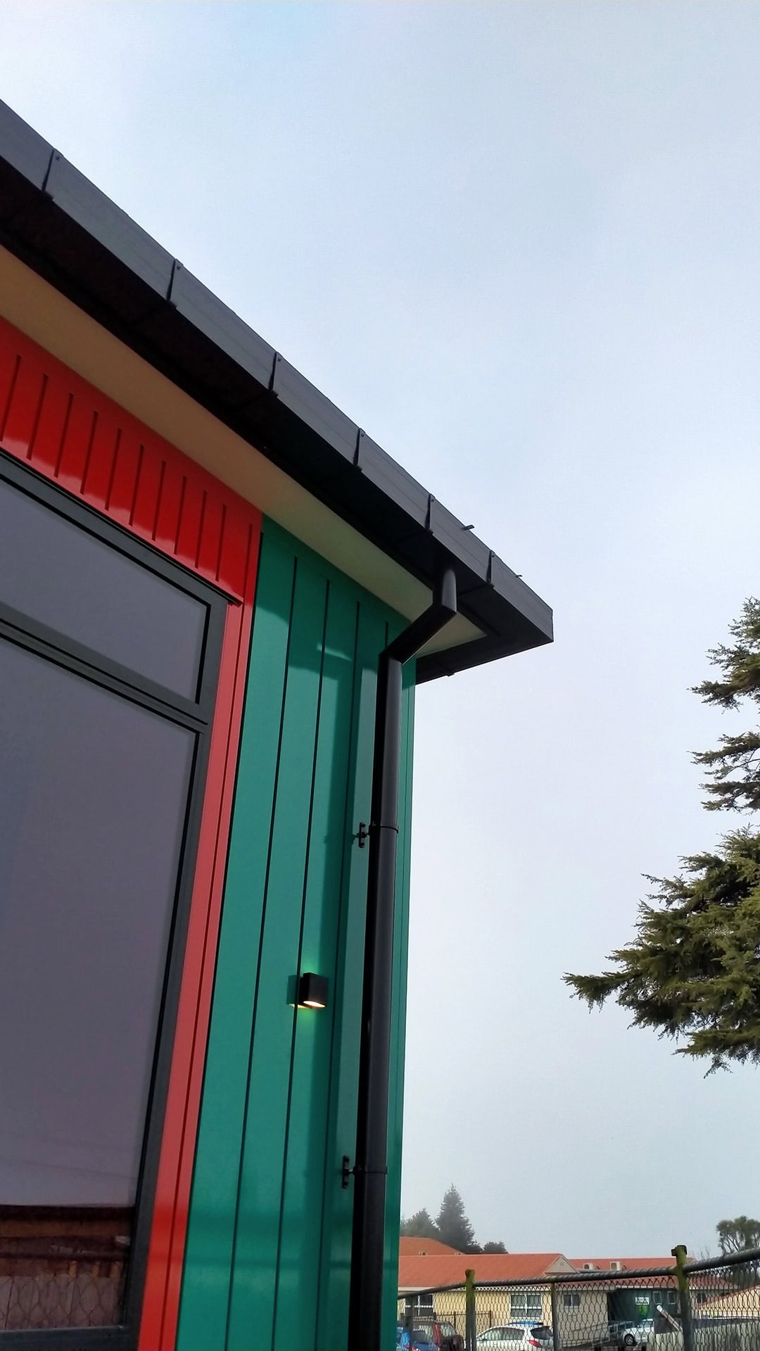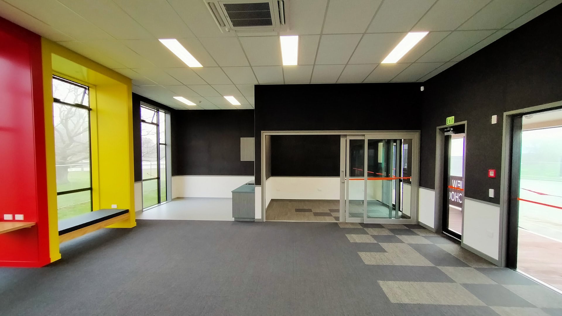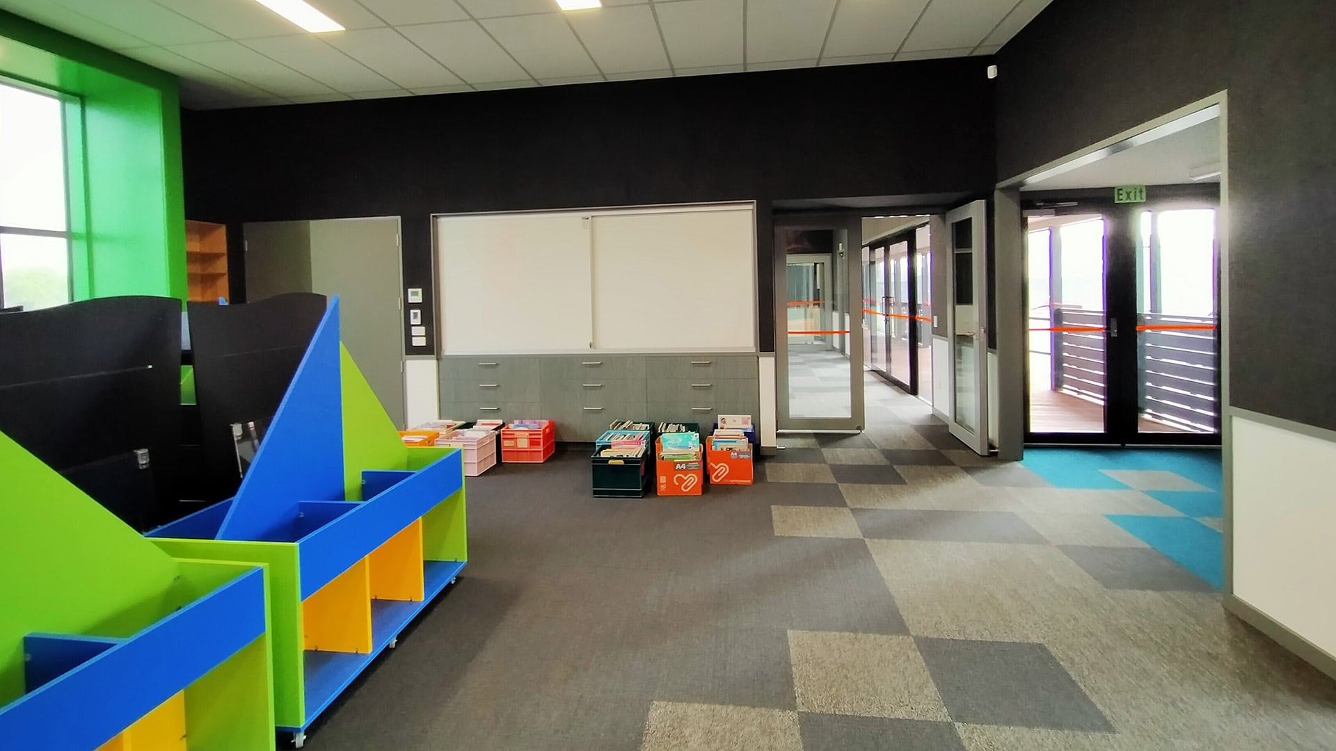 Our solution involved a complete exterior reclad using durable aluminum cladding, providing longevity and weather resistance while updating the building’s aesthetic appeal. Internally, the space was fully refurbished to foster a vibrant and engaging atmosphere. Bold, bright colors and innovative joinery features were incorporated both inside and outside, reinforcing the school’s lively and welcoming spirit.